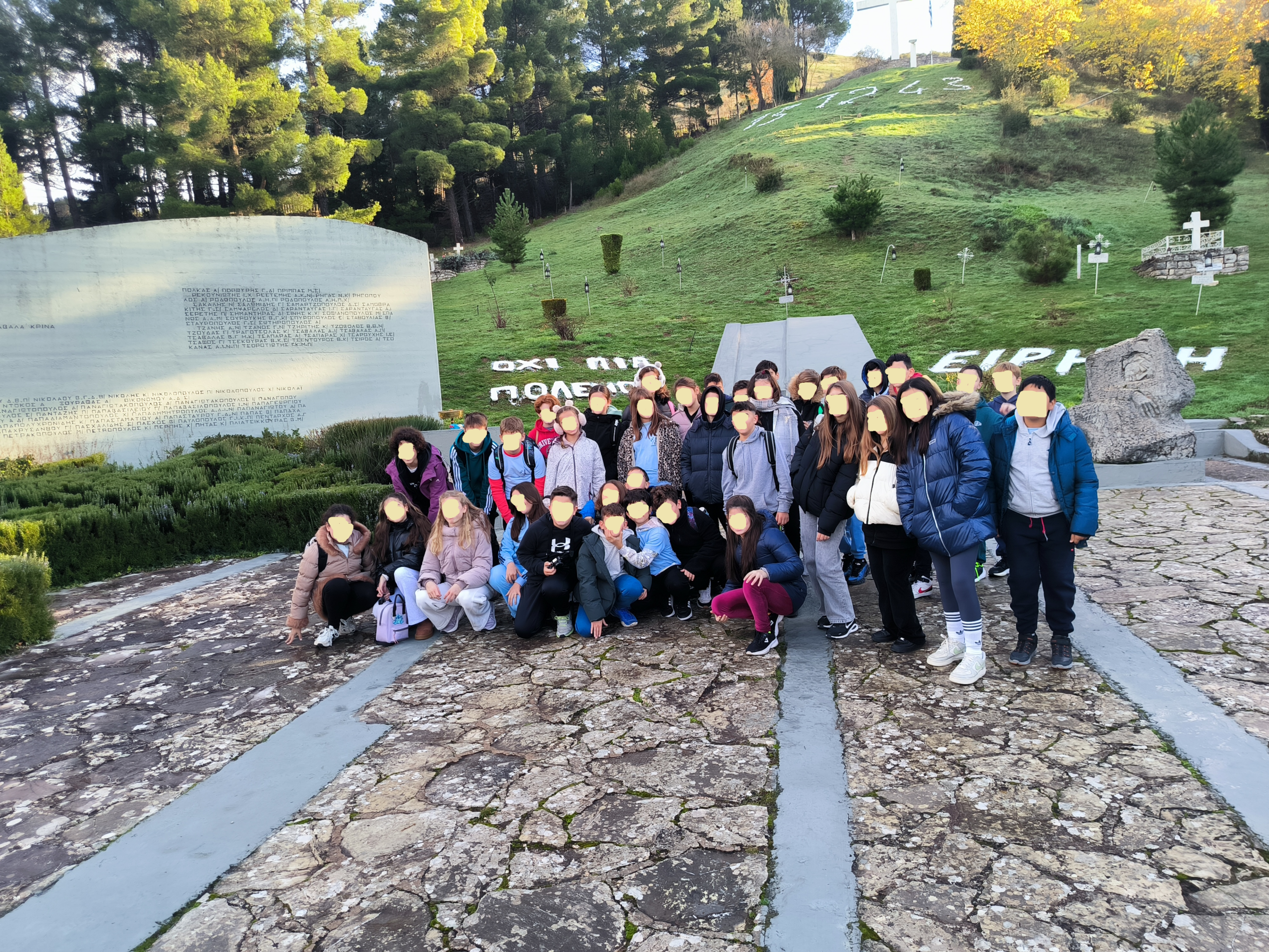 Κατά τη διάρκεια της εκδρομής, οι μαθητές επισκέφθηκαν τον Λόφο Θυσίας των Καλαβρυτινών, έναν τόπο μνήμης και σεβασμού, όπου είχαν την ευκαιρία να γνωρίσουν από κοντά τα τραγικά γεγονότα του Ολοκαυτώματος των Καλαβρύτων και να κατανοήσουν τη σημασία της ιστορικής μνήμης.