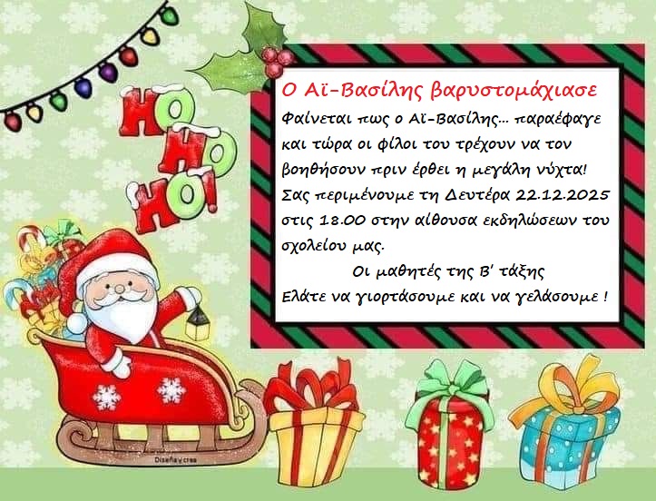 2025-2026, Β' Τάξη, Β1, Β2, Σχολείο, ΣΧΟΛΙΚΗ ΓΙΟΡΤΗDecember 18, 2025Χριστουγεννιάτικη γιορτή – Πρόσκληση